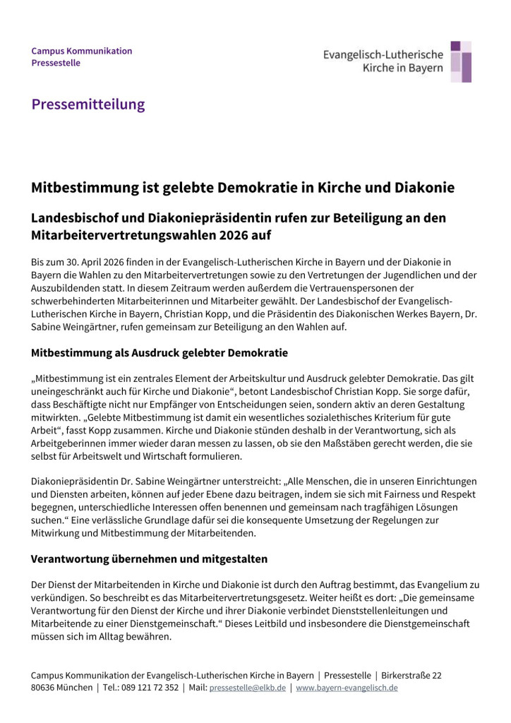 Mitbestimmung ist gelebte Demokratie in Kirche und Diakonie